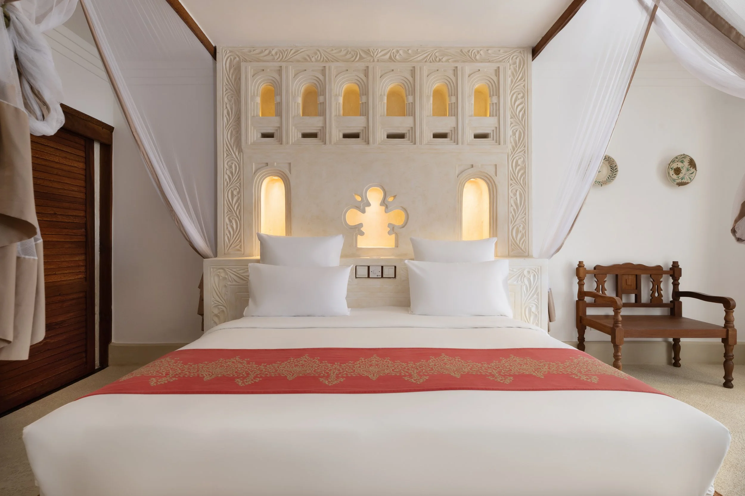The resort features 125 elegantly appointed rooms and suites, blending traditional Swahili artistry with sophisticated modern finishes.