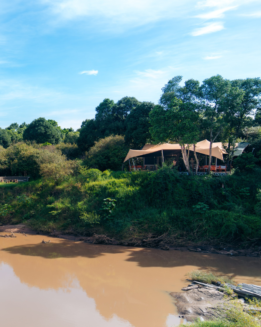 Emboo Safari Camp offers an innovative, ecofuturistic safari experience nestled within a lush, riverine forest in the heart of the world-famous Maasai Mara National Reserve. This pioneering camp is renowned for being the first fully "closed-loop" eco-camp in the region, situated along a bend of the Talek River where hippos and elephants are frequent visitors to the banks just steps from your tent. The camp features luxurious, eco-friendly suites designed with a contemporary African aesthetic that emphasizes harmony with nature.