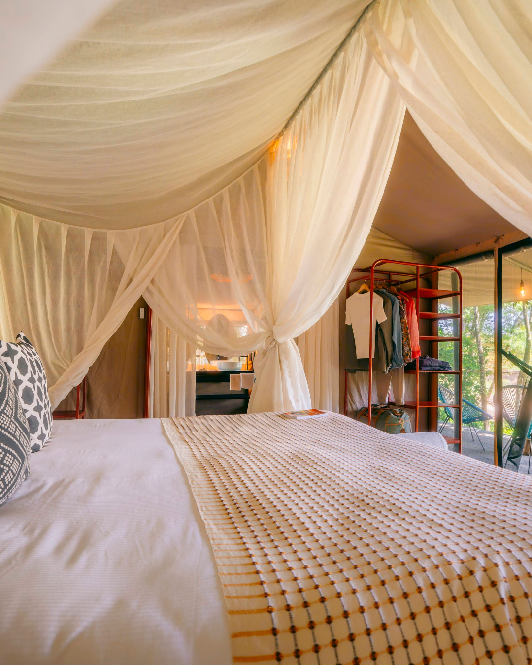 The camp features 8 spacious, ensuite safari tents and 2 large honeymoon/family suites. Each tent is set on a raised wooden platform with a private veranda that serves as your personal viewing deck.